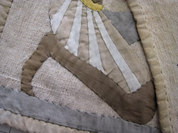 The four layers of fabric created a lot of bulk. I love my electric rotary cutter for stacking and cutting multiple layers of heavy fabrics- a real time saver, and it doesn't hurt my hands.