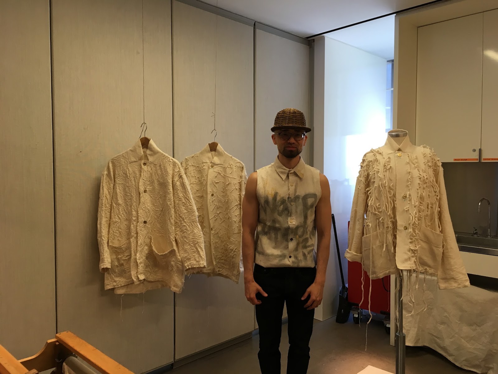 Camille and I first stopped in to repair a roman shade on Broadway at 87th st. We wanted a walk in the Park since it was the season's first really summery day, and came prepared with a picnic lunch from home. Columbus Circle was walkable so we headed that way, stopping in at the formerly closed-to-the-public Hallett Sanctuary at the south end of Central Park- a springtime treat since the wildflowers were in full bloom.MAD hosts artists-in-residence, and our first stop was Yoshi's studio on the 6th floor. His zero-waste three-dimensional weaving was mind-opening. We were excited to immediately find this textile artist whose first question to us was, "well, what do YOU make?" He generously shared so much information that was of interest to use about weaving, dyeing, and local sourcing of his materials. We also found a fellow devotee of Alabama Chanin!
